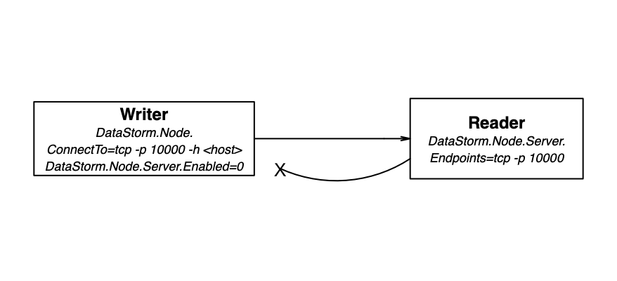 For example, with the configuration show in the diagram below, the writer can connect to the reader but the reader can't connect to the writer.