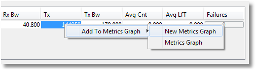 You can create a new Metrics Graph window with the File > New > Metrics Graph menu, or with a contextual menu over a metric in a Metrics View, for example: