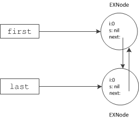EXNode *first = [EXNode node:1 s:firstString next:last];