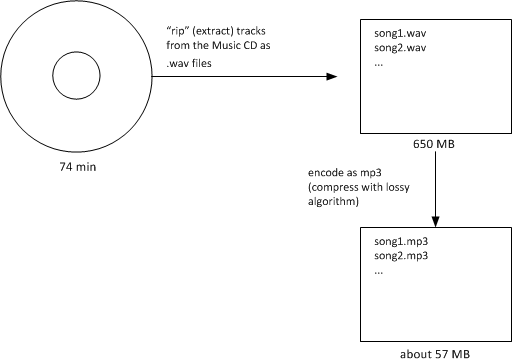 Our application "rips" music tracks from a compact disc (CD) and encodes them as MP3 files, as shown below: