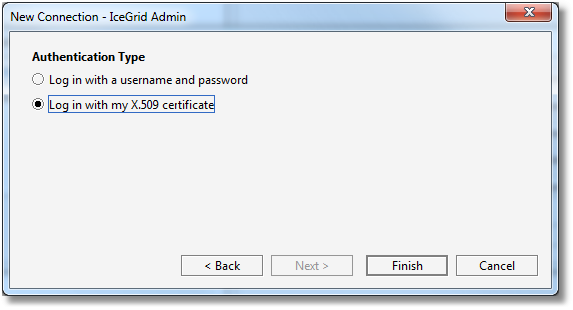 Step 8: Choose to use this X.509 certificate (carried through the SSL connection) to authenticate ourselves with the IceGrid registry: