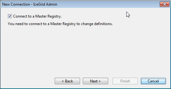 Step 7: Click Finish to save the connection; IceGrid Admin then attempts to connect to the IceGrid registry.