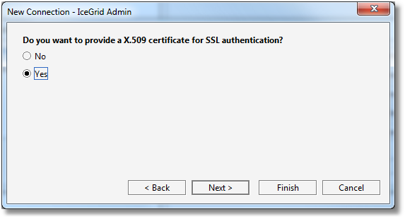 Step 6: Select Yes to provide an X.509 certificate for SSL authentication: