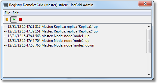 When in the running state, the dialog attempts to retrieve new lines from the log file (through IceGrid) every Poll period seconds.