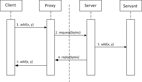 addby calling the member functionaddon a proxy. - The generated proxy class marshals the arguments into a sequence of bytes and transmits them to the server.