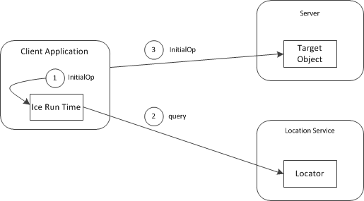 initialOpon an indirect proxy. - The Ice run time checks an internal cache (called the locator cache) to determine whether a query has already been issued for the symbolic information in the proxy. If so, the cached endpoint is used and an invocation on the locator object is avoided. Otherwise, the Ice run time issues a locate request to the locator.