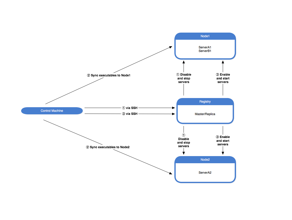 - Update the server executables on each node.