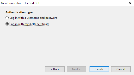Step 8: Choose to use this X.509 certificate (carried through the SSL connection) to authenticate ourselves with the IceGrid registry: