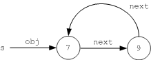 Suppose we create an instance of structure S and assign it to the variable s, then construct the following class graph: