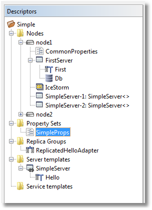IceGrid GUI maps these descriptors to nodes on a tree representation: