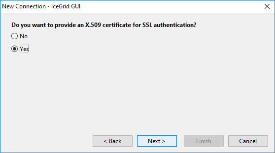 Step 6: Select Yes to provide an X.509 certificate for SSL authentication: